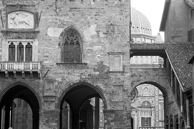 aprile 1993 - Scorcio della Piazza Vecchia con la Cappella Colleoni in secondo piano