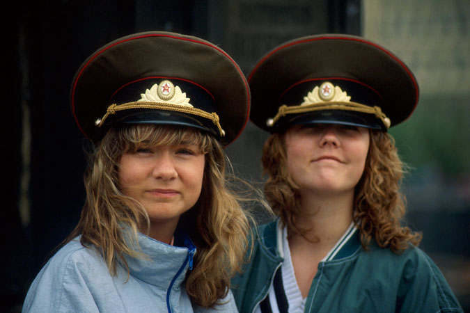 aprile 1992 - Berretti dell'Armata Rossa in vendita sulle bancarelle del Ponte Carlo