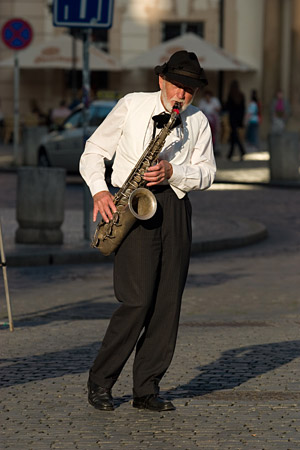 settembre 2008 - Un distinto musicista di strada nella Piazza della Città Vecchia