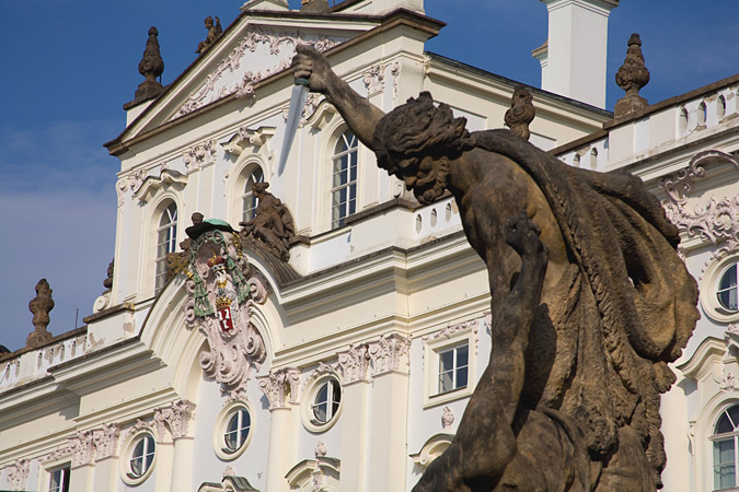 settembre 2008 - Una delle statue che dominano l'ingresso del castello di Praga (Pražský hrad)
